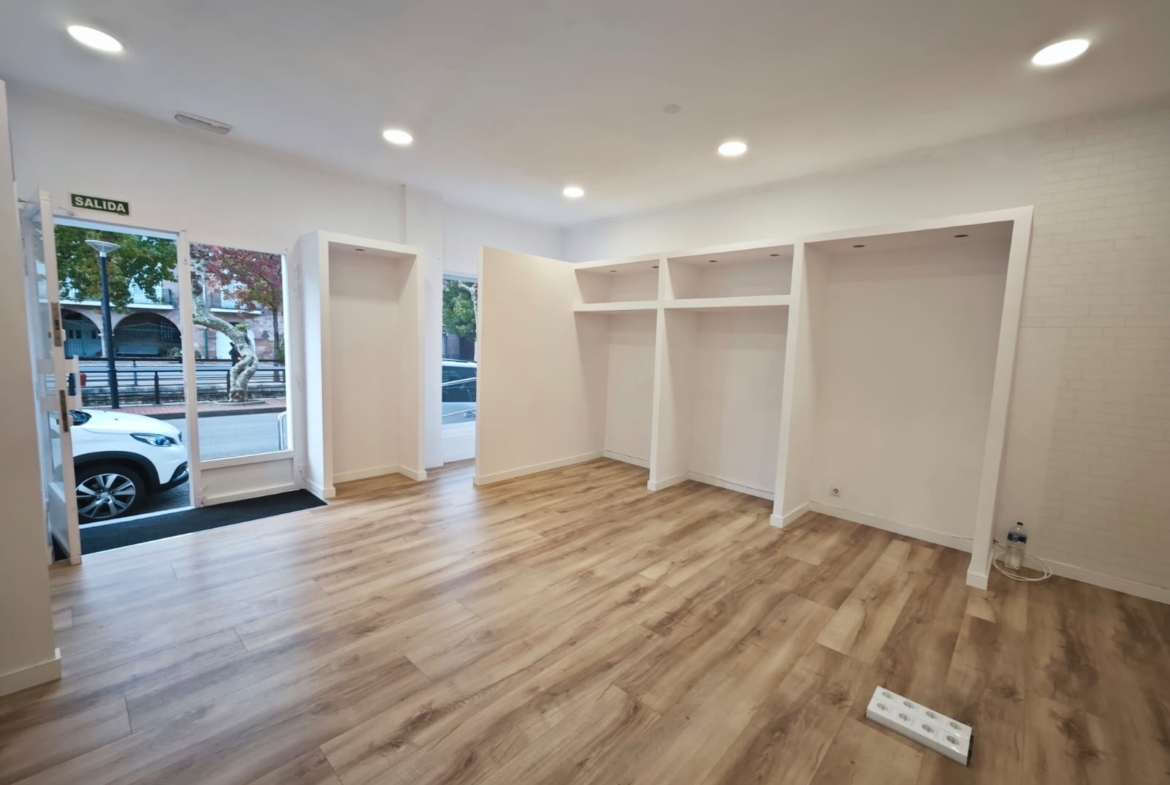 El local cuenta con una fachada moderna con amplios escaparates, lo que garantiza gran luminosidad y visibilidad desde la calle.